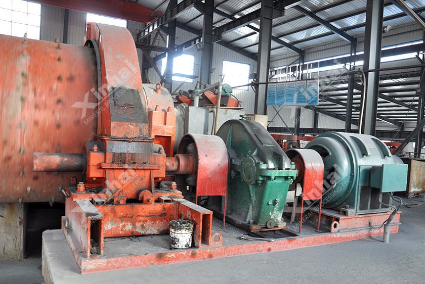 Измельчение и классификация: был принят двухстадийный процесс измельчения; мельница самоизмельчения использовалась на первом этапе, где измельченные материалы классифицировались с помощью линейного грохота; негабаритные материалы, возвращаемые в мельницу для повторного измельчения и поэтому замкнутый цикл первой стадии измельчения формировался; низкосортные материалы перекачаны шламовым насосом в циклон для классификации. Отстойные материалы поступают в шаровую мельницу с разгрузкой через решетку для формирования замкнутого измелтчения второй стадии. В то же время перелив циклона стекает под действием силы тяжести в процесс флотации. Окончательная тонкость помола составляла -200 меш (65%).